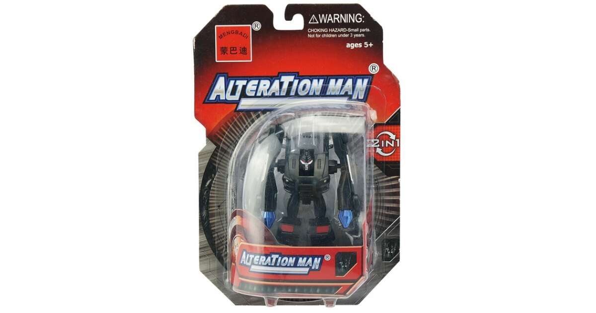 Сгъни робота, докато се превърне в полицейска кола! Черният трансформиращ се робот Alteration man е бойна фигура от пластмаса, която с няколко движения можеш да превърнеш в американска полицейска кола. В ръцете на робота има по един нож, с които можеш да победиш враговете си, а превърнат в кола, играчката може да се мести и да се използва дори на писти. Размерът на черния трансформиращ се робот Alteration man е 10 см.