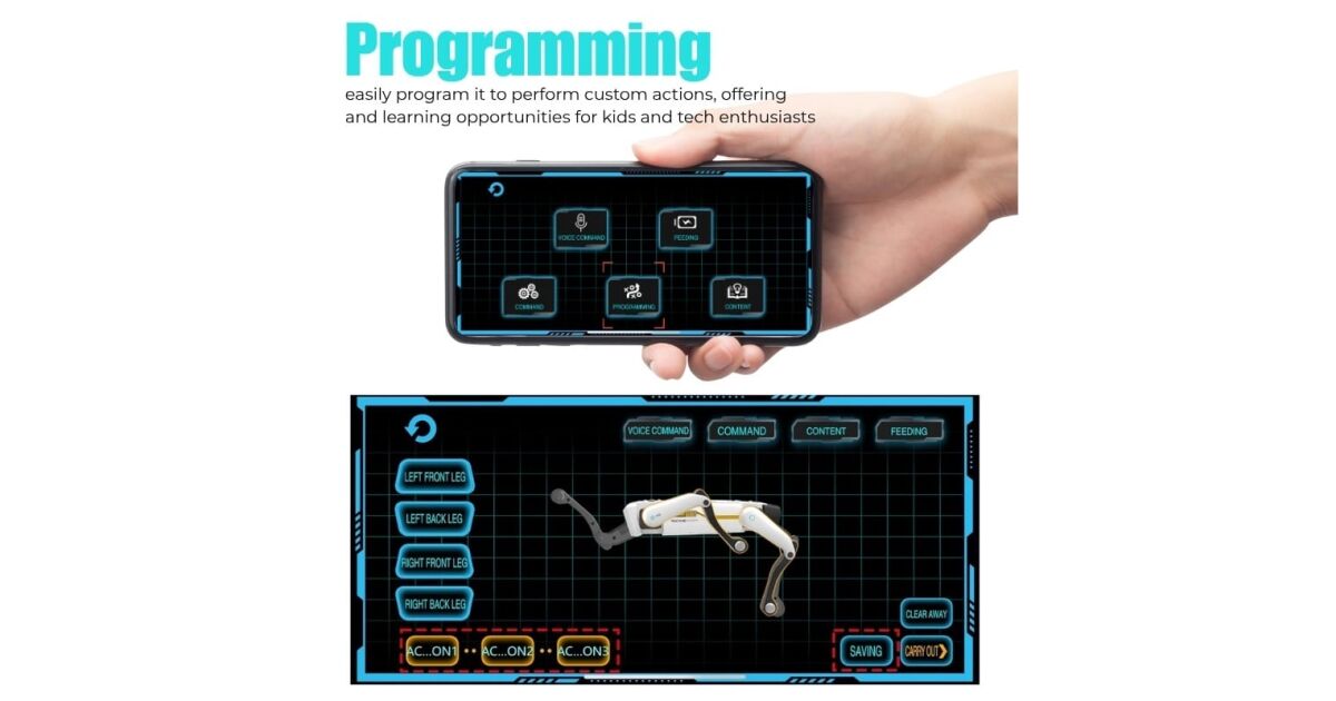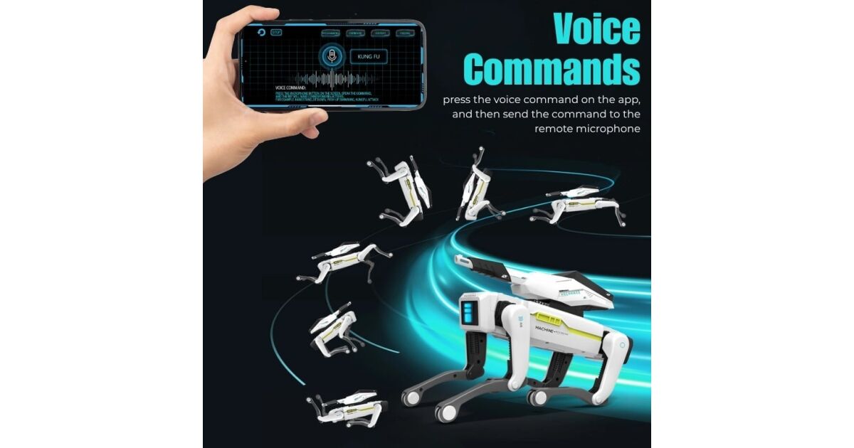 - Гласови команди: Управлявай кучето робот с прости английски гласови команди.