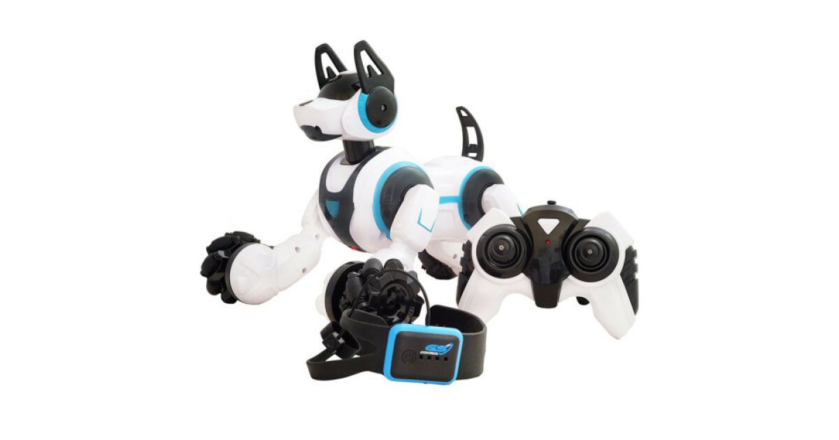- Дистанционно Управление с Жестове: Управлявайте кучето с движения на ръката, използвайки дистанционното тип "часовник".