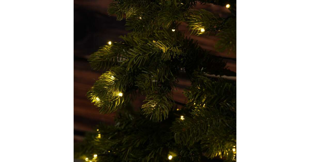 Създайте уютна коледна атмосфера в дома си с тази красива коледна елха с височина 180 см! Вграденото топлобяло LED осветление придава празничен блясък на елхата, така че ще ви е нужно по-малко допълнително украсяване. Перфектен избор и за по-малки помещения, тъй като компактният ѝ дизайн не заема много място.
