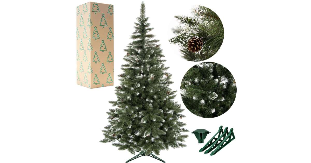 Тази красива изкуствена елха Springos с височина 150 см е идеалният избор за създаване на празнично настроение. Снежните клони и естествените шишарки придават елегантен и рустик вид на дървото. Лесна е за сглобяване и гарантирано ще оживи вашата коледна украса.