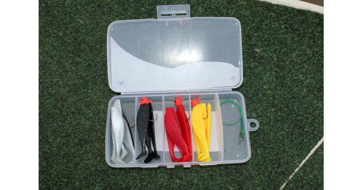 Un set conceput pentru cei care se initiaza in tainele pescuitului la salau si stiuca. Cutia contine 16 shaduri de patru culori diferite. Din fiecare culoare, cate o naluca este armata cu jiguri - faimoasele catlige cu lest rotund. Cele doua strune isi vor dovedi perfect eficienta in fata dintilor cei mai ascutiti de stiuca. Kitul contine: 16 Shaduri - cate 4 culori diferite 2 Strune 4 jiguri care armeaza cate una dintre cele 4 culori Cutie de transport ABS cu 5 compartimente Aplicatie: Pescuit la Jig Specii tinta: Stiuca, Salau
