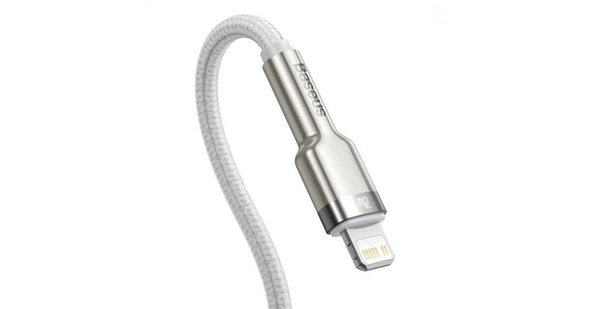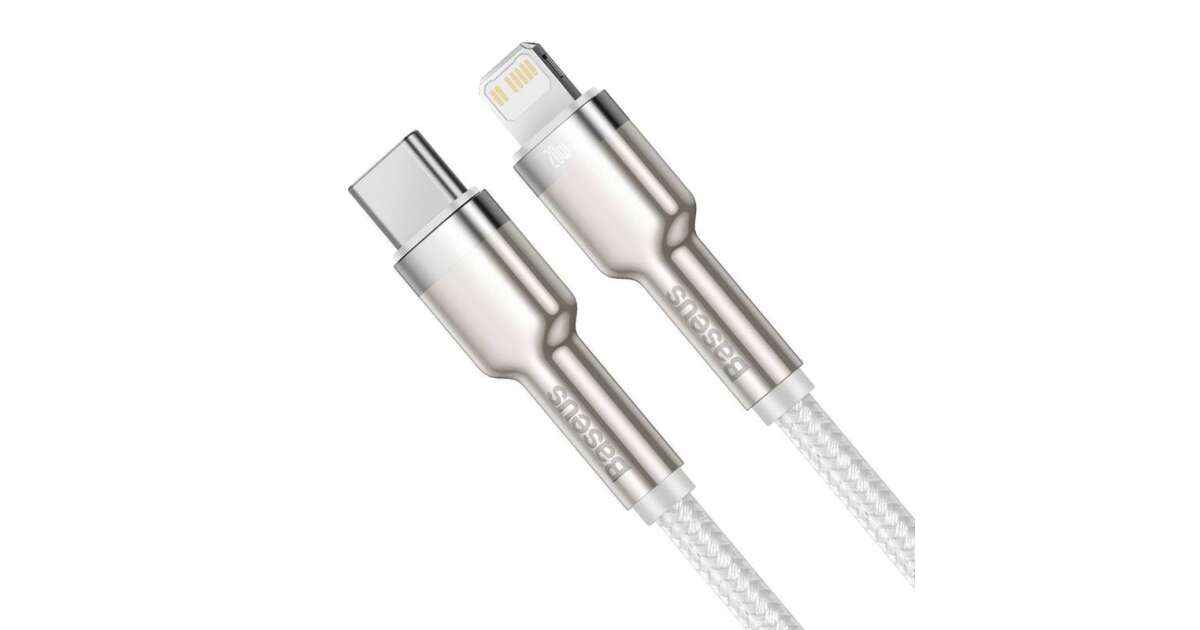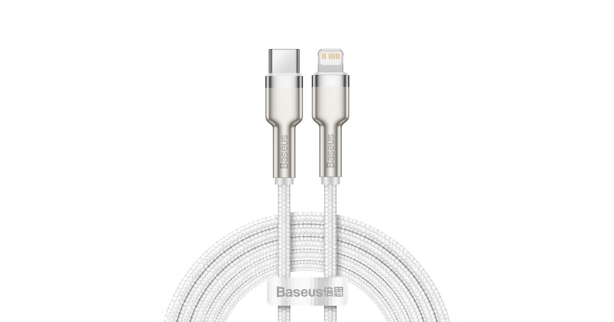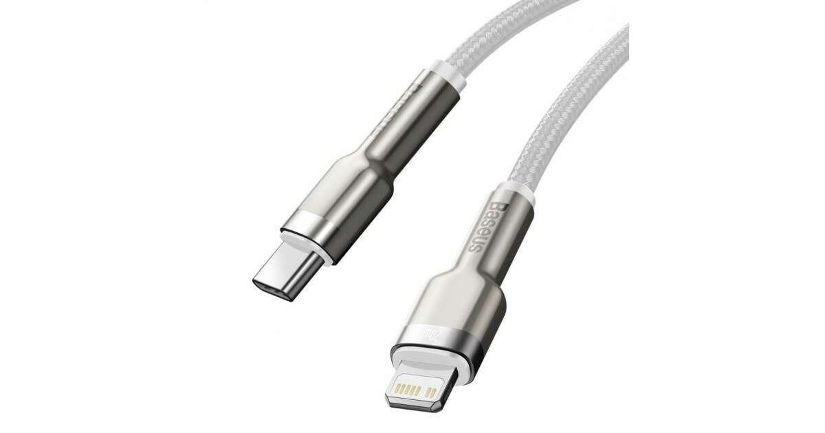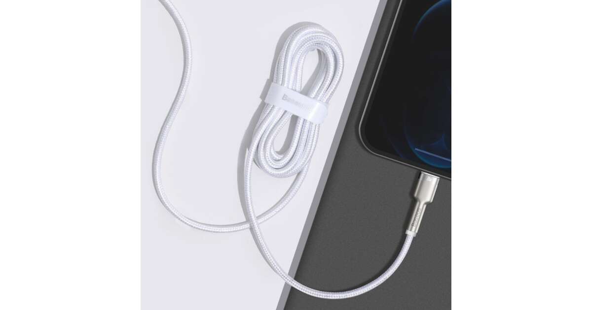 Кабел Baseus Cafule Metal Data USB-C към Lightning, Power Delivery, 20W, 2m, бял (CATLJK-B02) описание на...
