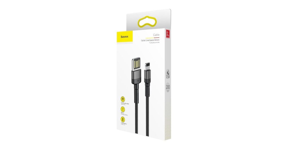 -Baseus Cafule Lightning - USB (двустранен) кабел 2m черен-сив (CALKLF-HG1) описание на...