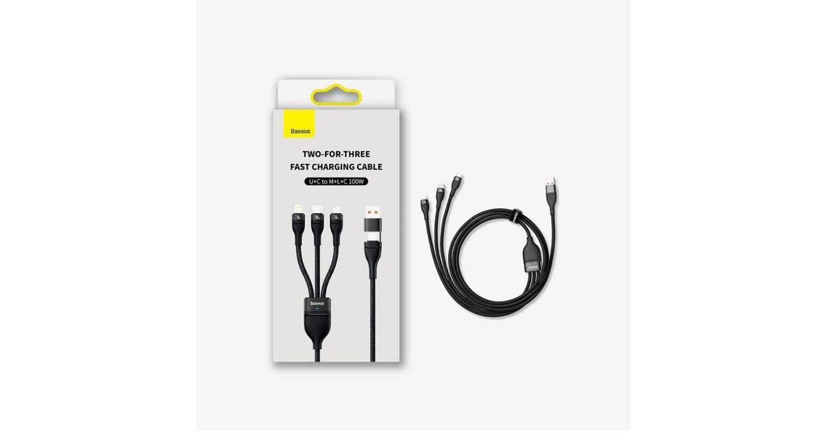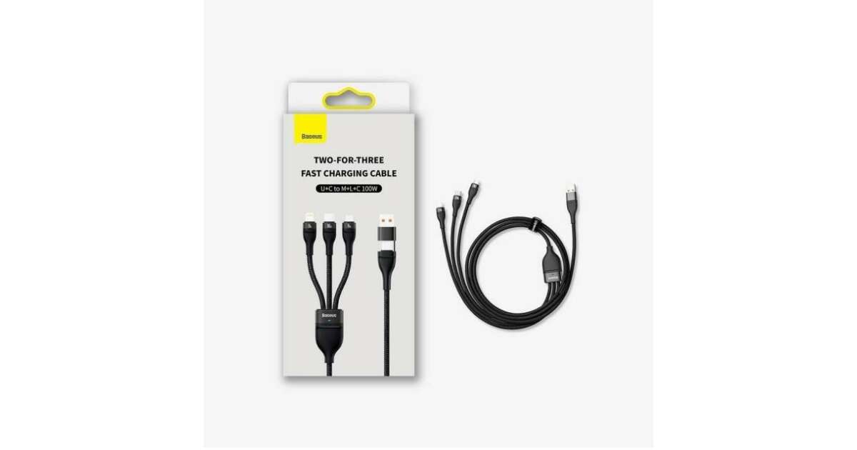 Този кабел Baseus Flash Series 2 е практично 3-в-1 решение, което разполага с USB-C, Micro USB и Lightning конектори, така че можеш да зареждаш всичките си съвместими устройства само с един кабел. Благодарение на максималната мощност от 100W, можеш изключително бързо да зареждаш телефона, таблета или лаптопа си. ⚡️