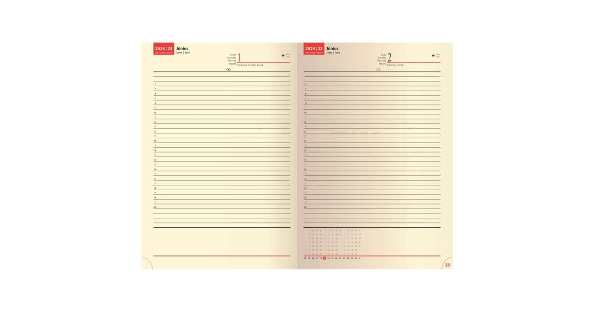 Този ежедневен планер за 2024 г. е идеалният избор за организиран начин на живот. Елегантният кафяв, термочувствителен матов кожен калъф придава първокласно усещане. Кремавите страници са приятни за очите и осигуряват достатъчно място за водене на бележки.