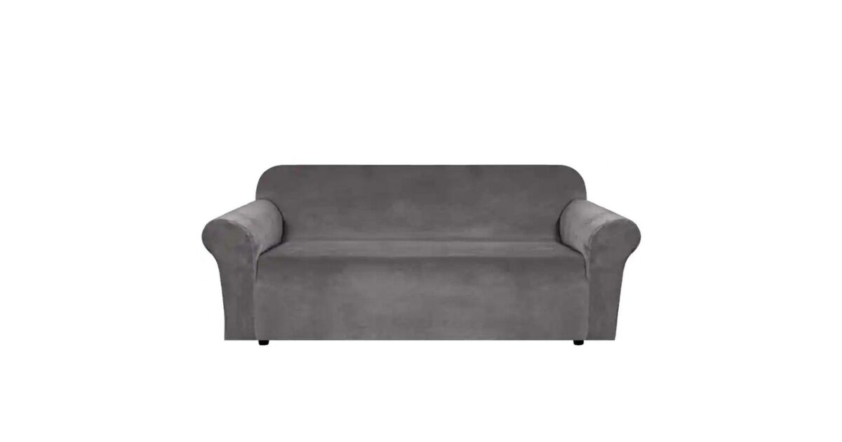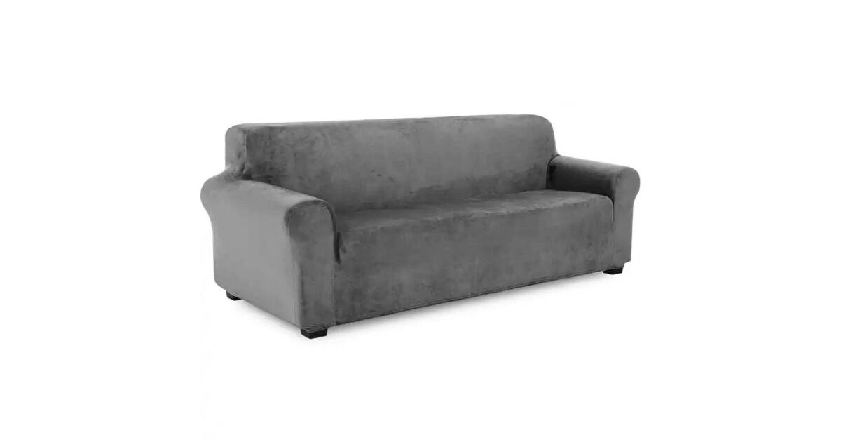 Универсален калъф за 3-местен диван - кадифен ефект, сив цвят