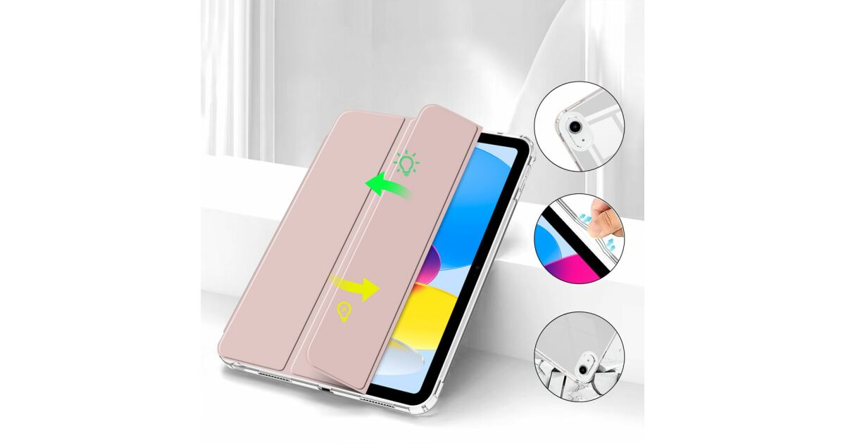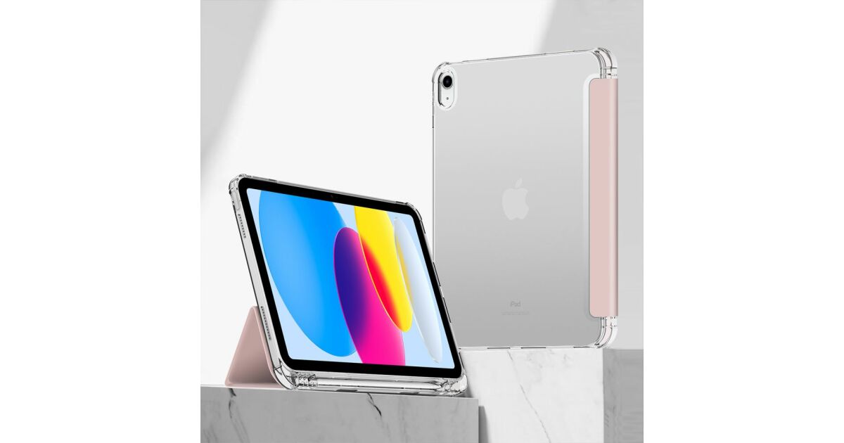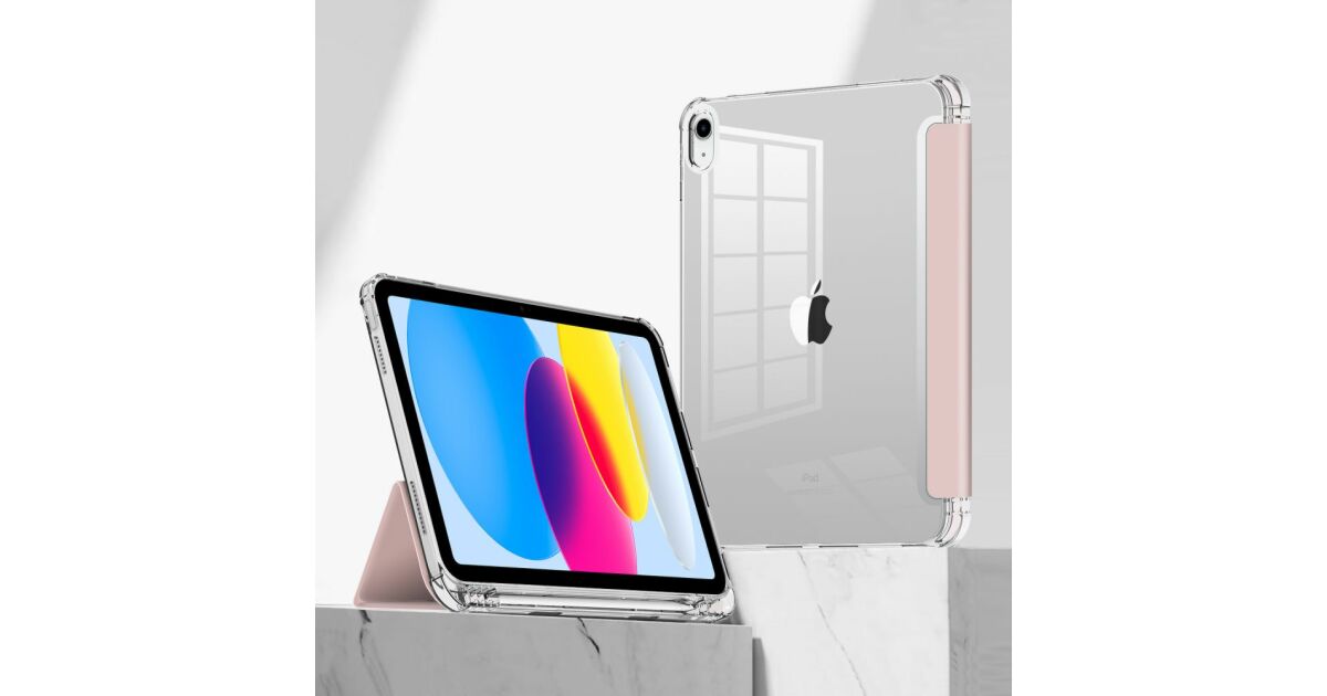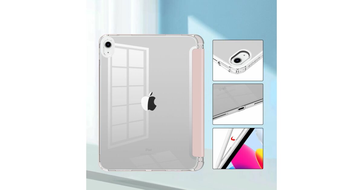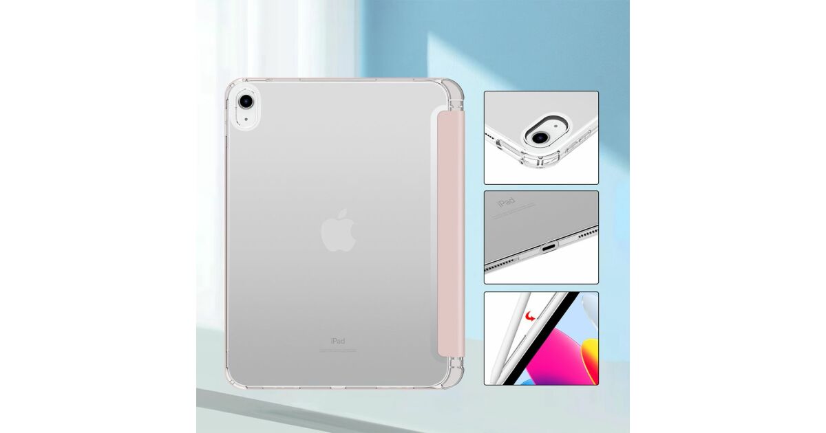 Apple iPad 10.9 (2022), калъф тип „сгъваем“, средна устойчивост на удар, държач за стилус, без стилус, прозрачен гръб, Smart Case, хибриден държач за... описание на...