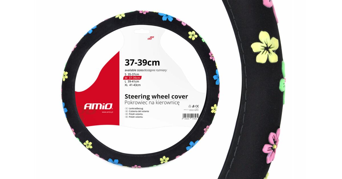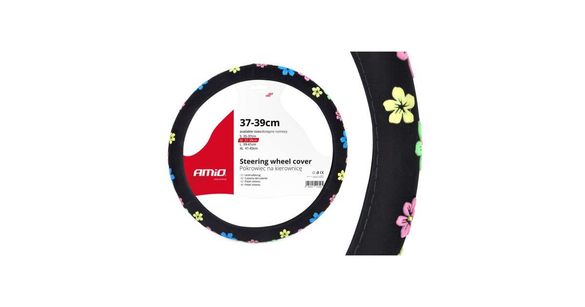 Калъф за волан Amio, SWC-13, С апликация цветя, Размер М 37-39см, AеSAMI