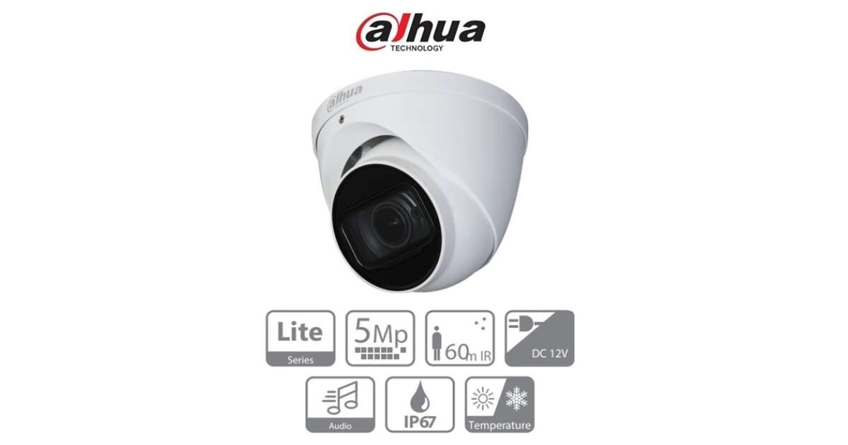 Dahua Аналогова куполна камера - HAC-HDW1500T-Z-A (5MP, външна, 2,7-12mm, IR60m, ICR, IP67, DWDR, аудио)