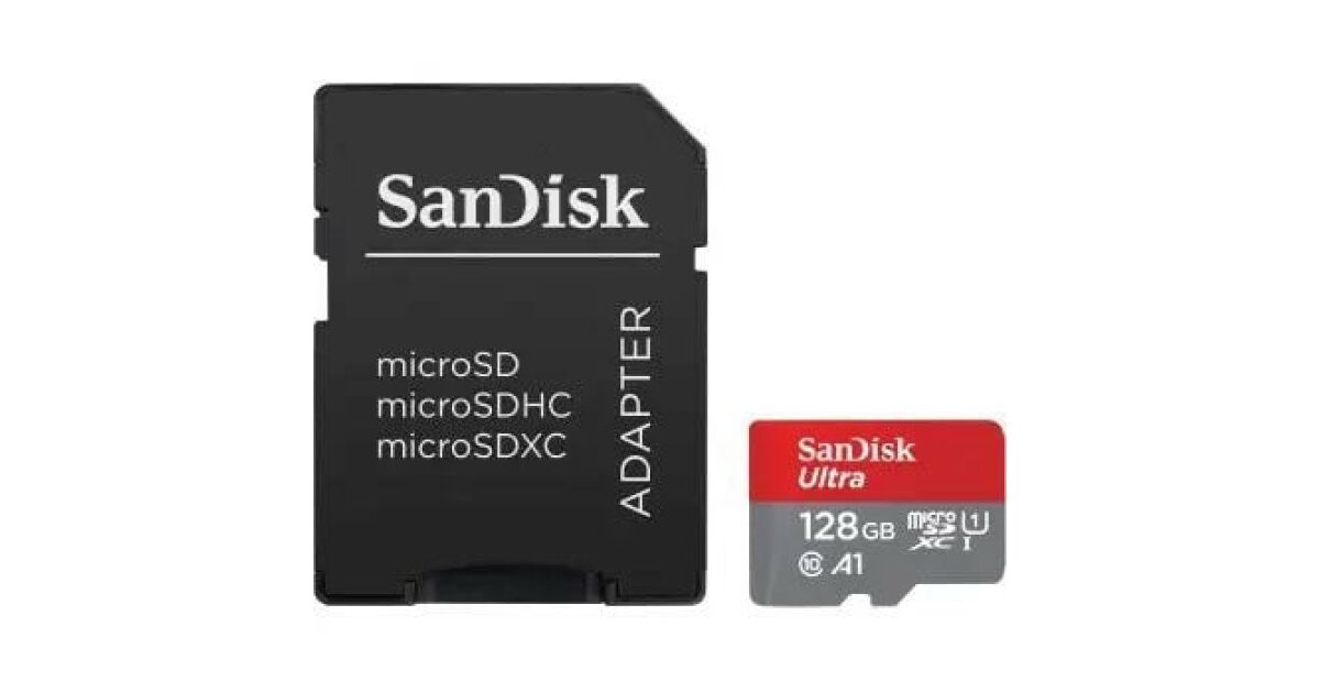 SanDisk MicroSD карта 128GB Ultra Android (140MB/s, Class 10 UHS-I, A1) + адаптер