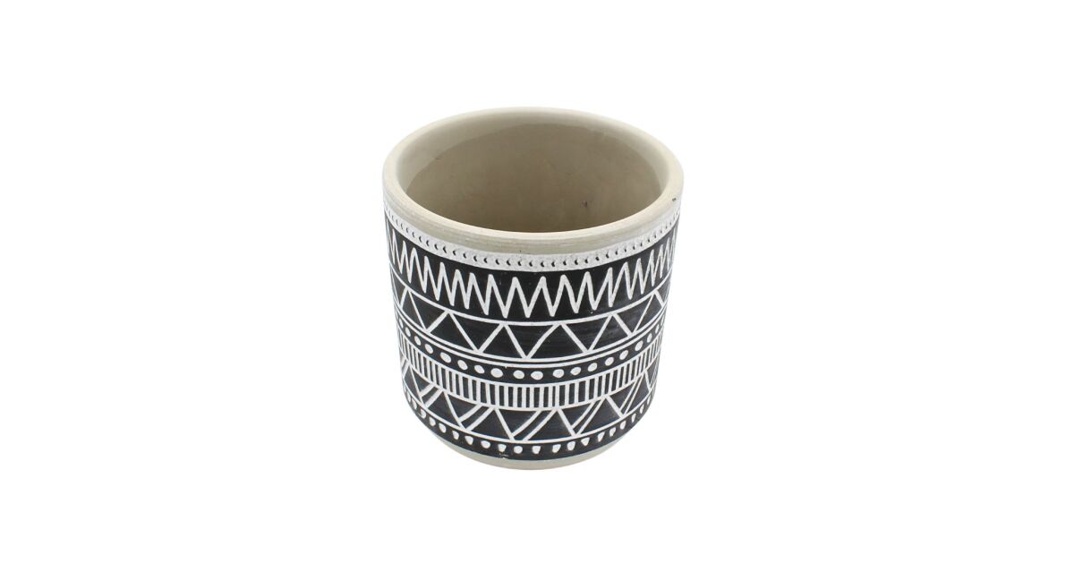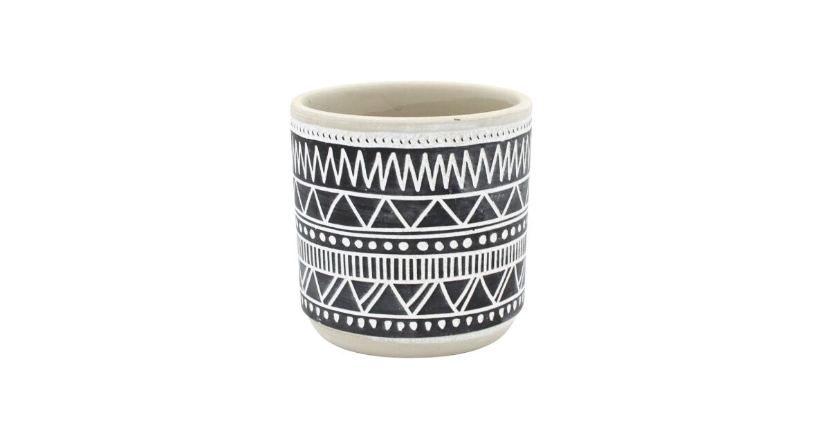 Тази очарователна керамична саксия с размери 9x9 см е перфектният избор за малки растения, като кактуси или сукуленти. Черно-белият геометричен мотив придава модерен и стилен вид, освежавайки всяка стая във вашия дом. ✨