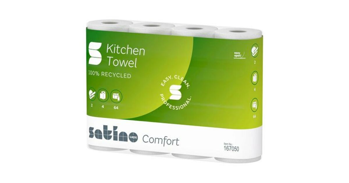 Силно абсорбираща хартиена кърпа за домакинството, произведена от 100% рециклиран материал.