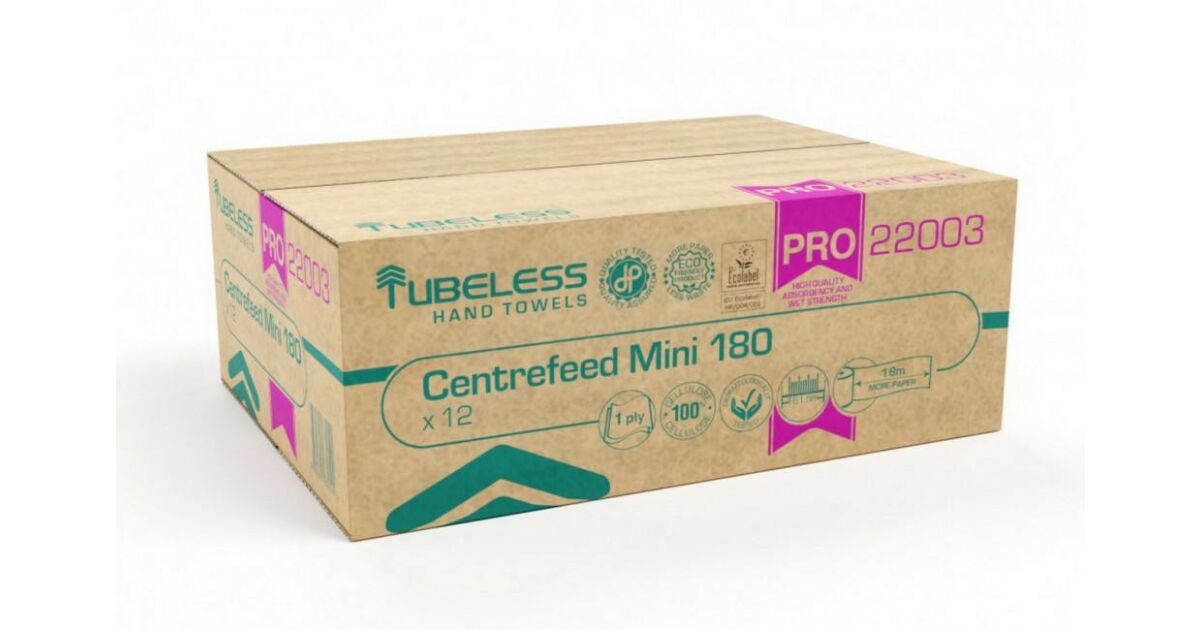 Ролката кърпи за ръце Tubeless PRO 180 Mini е идеален избор за всички, които търсят икономично и същевременно екологично решение за подсушаване на ръцете. Благодарение на дизайна без вътрешна ролка, цялата ролка може да се използва, минимизирайки отпадъците. Перфектен избор за офиси, заведения за обществено хранене и други обществени пространства.