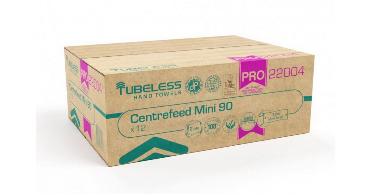 Tubeless PRO 90 Mini tekercses kéztörlő 2 rétegű, fehér, 100% cellulóz, 92m, 12 tekercs/zsugor описание на...