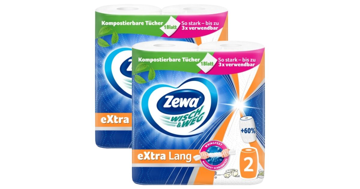 Zewa Wisch & Weg Extra Lang Design 2-пластови хартиени кърпи за домакинството 2x2 ролки описание на...