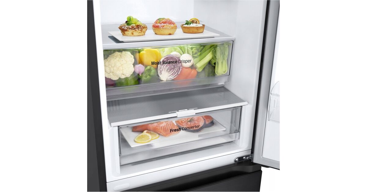 Хладилникът с фризер долу LG GBV3100EEP е идеален избор, ако за вас са важни голям капацитет за съхранение, модерен дизайн и енергоспестяваща работа. Наслаждавайте се на свежи храни за по-дълго време благодарение на специалните технологии!
