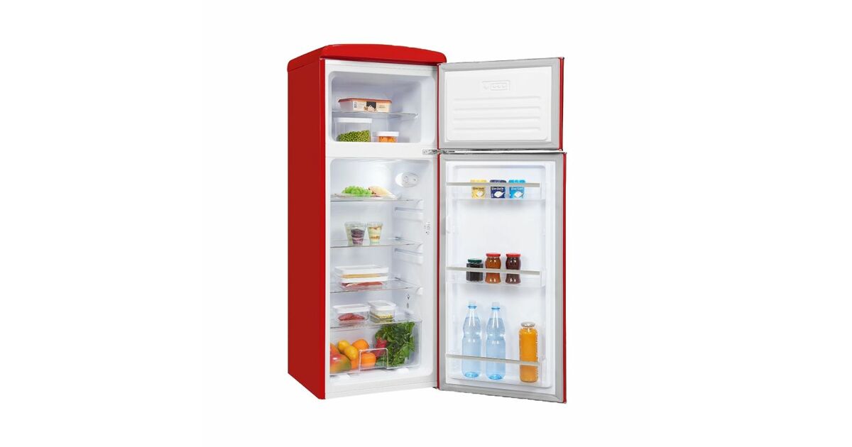 Exquisit retro хладилник, общ капацитет 206 литра, H 146,5 см, фризер 4 звезди, отделение за плодове/зеленчуци, 4 стъклени рафта, LED вътрешно осветление,...