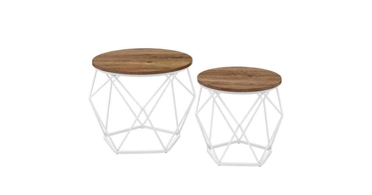 Превърнете пространството си с този комплект модерни масички за кафе, идеални за добавяне на стил и функционалност към всяка стая. Уникалният им дизайн, с кафяв плот и бяла геометрична рамка, със сигурност ще привлече всички погледи.