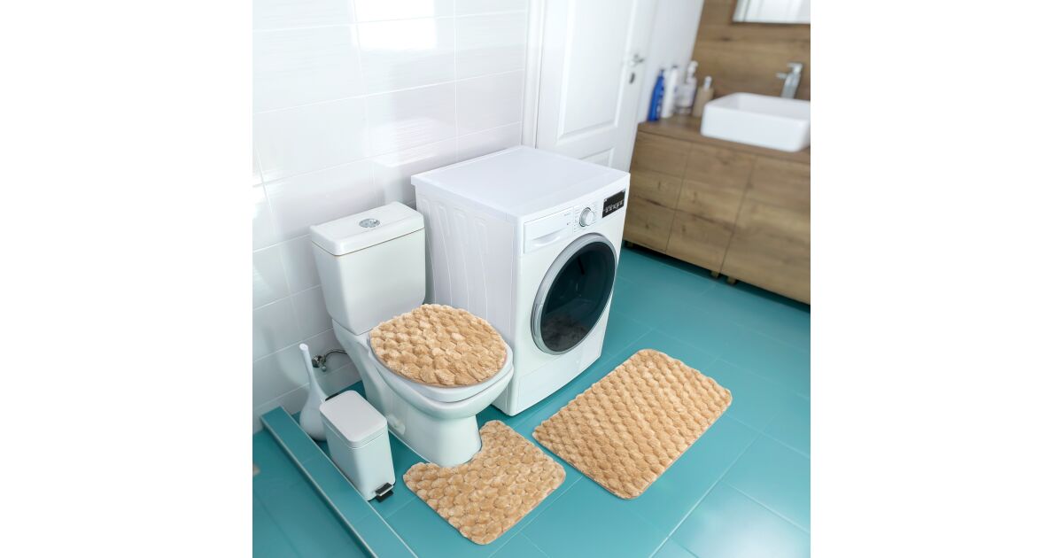 Комплект от 3 постелки за баня FizioTab®, микрофибър, мемори пяна, 80x50, 50x40, 40x45, противоплъзгащи, бежови описание на...
