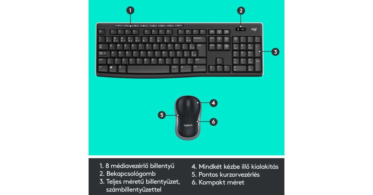 Насладете се на ефективна и удобна работа с безжичната комбинация от клавиатура и мишка Logitech MK270!