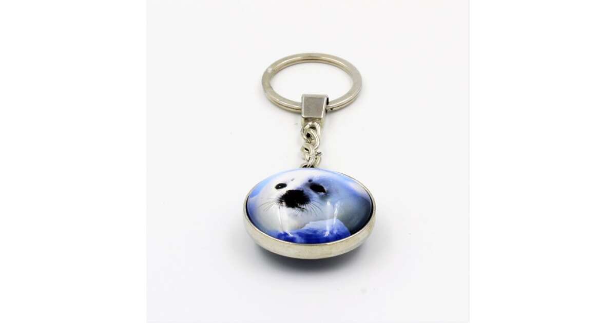 Този очарователен ключодържател разполага с медальон от неръждаема стомана, украсен със сладка картинка на тюлен. Той е идеален за всеки, който обича тюлените и иска уникален, издръжлив ключодържател.