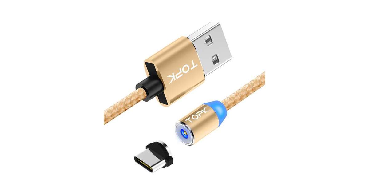 LED магнитен кабел за зареждане 1m TOPK 2.4A USB Type-C USB-C 360 ротация Android LG HTC Nexus Allview Huawei, златен отзиви