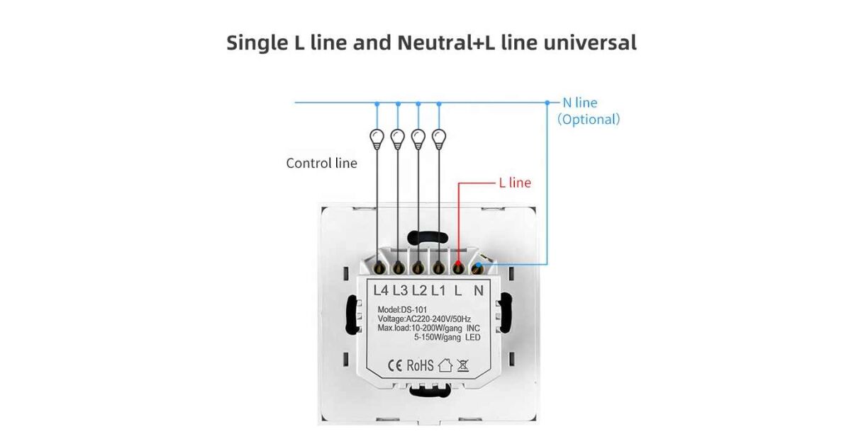 - N+L свързване: Необходим е неутрален проводник за работа.