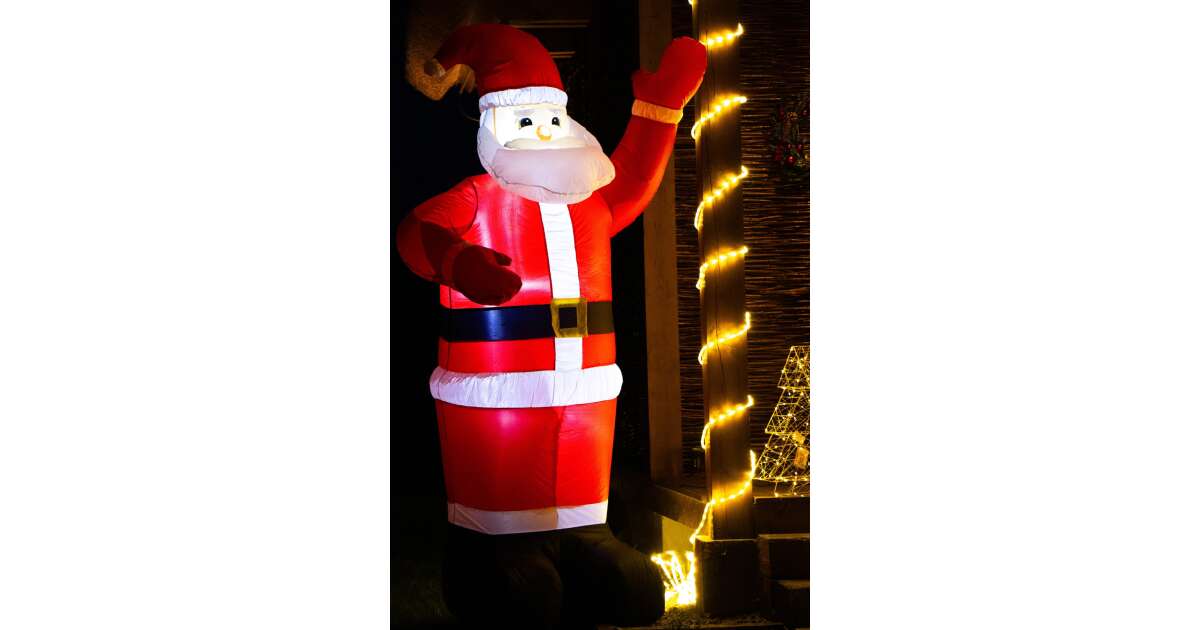 Този 180 см висок, надуваем Дядо Коледа е перфектното допълнение към вашата празнична украса. Създава весело, коледно настроение пред къщата или в градината. Вграденото LED осветление излъчва вълшебна светлина, правейки Дядо Коледа забележим дори и в тъмното.