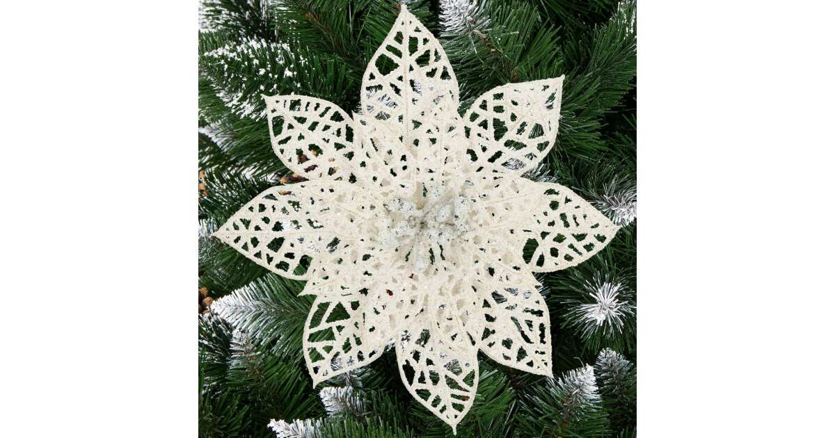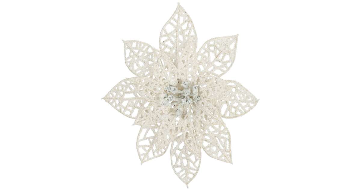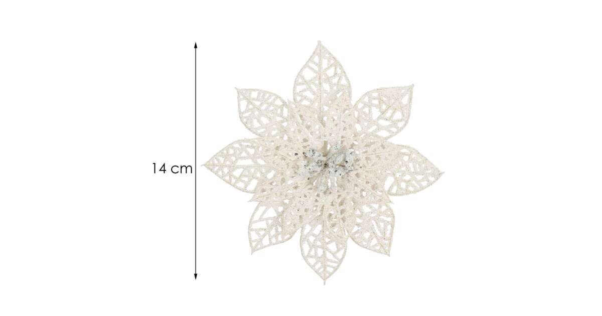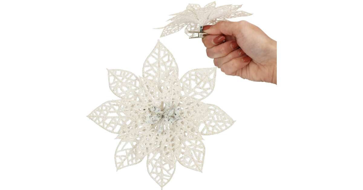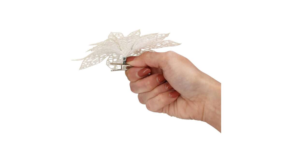 Озарете дома си с тази красива, блестяща украса "Коледна звезда", която е перфектното допълнение към вашата коледна украса. Белият брокат и снежният ефект създават вълшебна атмосфера.