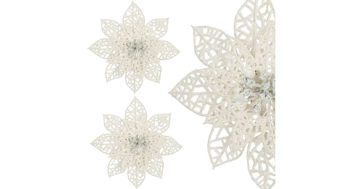 Комплект от 10 украшения за коледна елха, звезда Коледна звезда, 14 см, бели с блясък