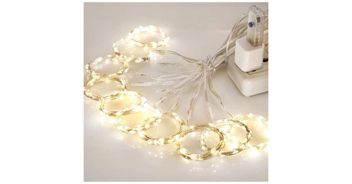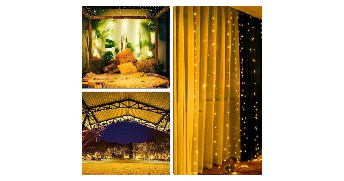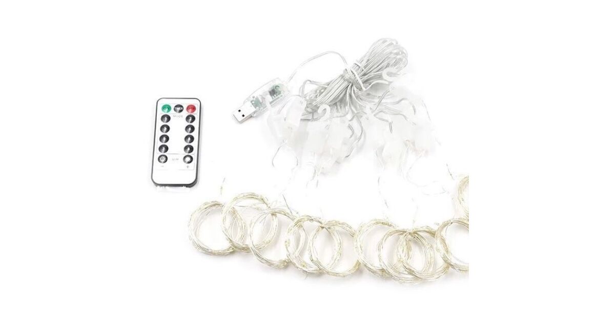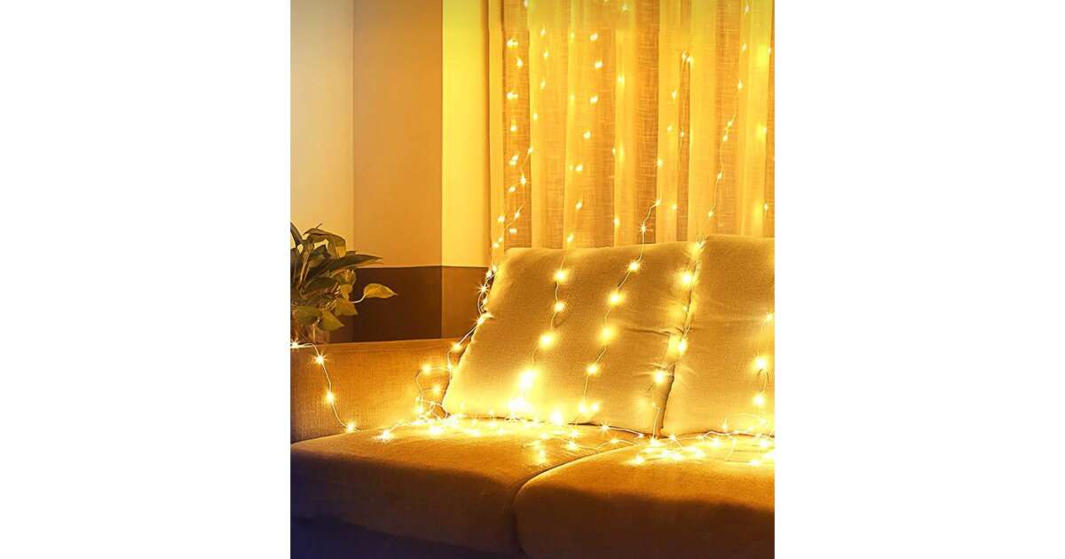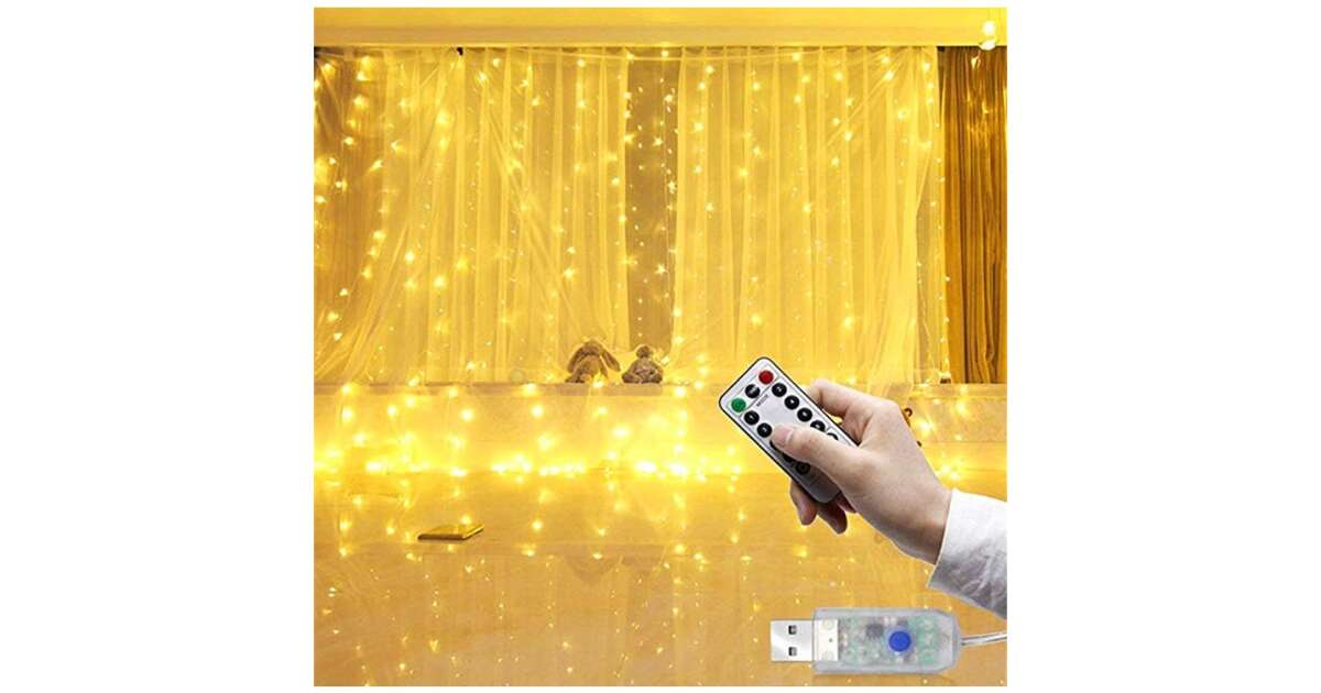 Създайте уютна коледна атмосфера в дома си с този красив LED гирлянд тип завеса! 100 топло бели LED крушки осигуряват сияйна светлина, а с размерите си от 3x1 метра е идеален за украса на прозореца, стената или дори коледната елха. Вграденото дистанционно управление с 8 функции ви позволява лесно да регулирате светлините, така че да можете да превключвате между различните светлинни ефекти, както желаете.