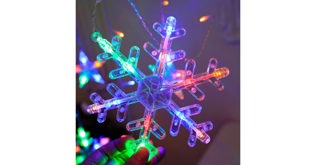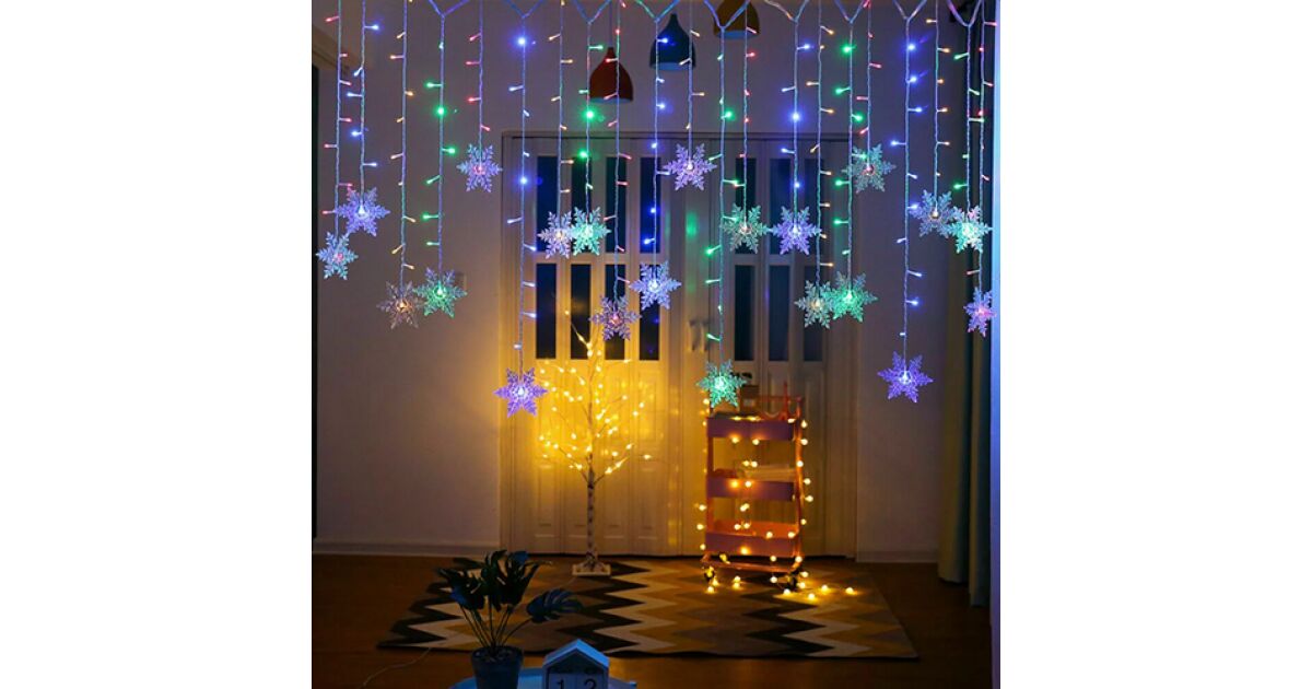 Светлинна завеса тип „Снежинка“ за външна и вътрешна употреба със 112 LED батерии, цветна RGB, ширина 200 см, с 8 режима на осветление описание на...