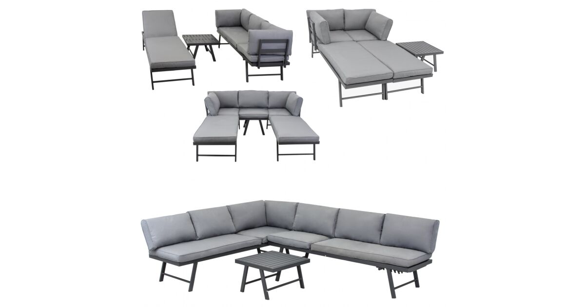 Превърнете вашата градина или тераса в стилно и удобно място за почивка с този модерен ъглов комплект и холна маса. Минималистичният дизайн в сив цвят се вписва чудесно във всяка външна среда.