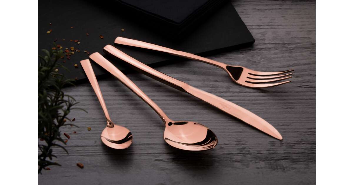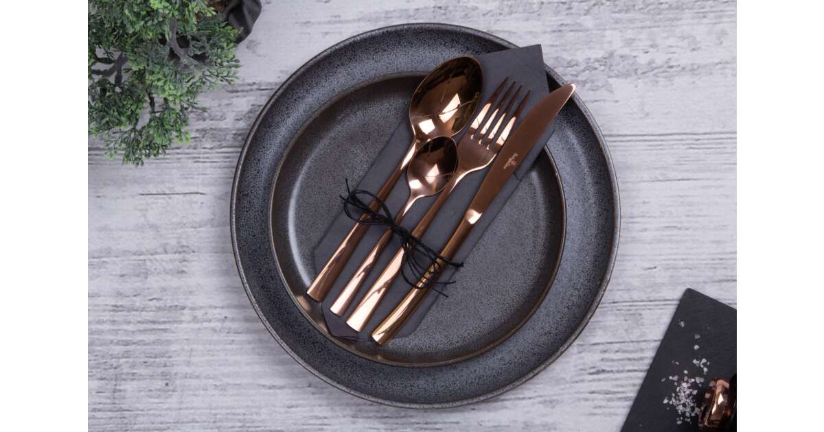 Този комплект прибори за хранене Berlinger Haus от 16 части е идеален за всеки, който цени качеството и стила. Изработени от неръждаема стомана с огледално полирано розово злато, тези прибори за хранене придават елегантен вид на масата и ще бъдат верен спътник на вашите хранения в продължение на много години.