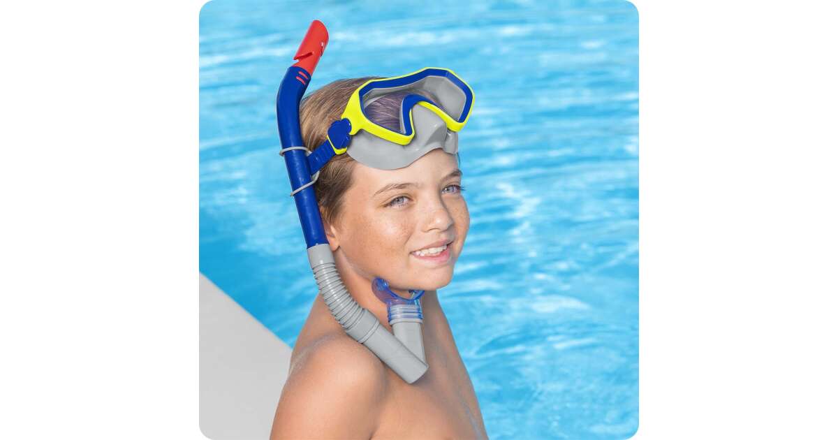 Този комплект за гмуркане от Bestway е перфектен за деца над 7 години, които искат да изследват подводния свят. С удобната и безопасна маска и шнорхел, децата ще се забавляват безопасно и приятно във водата.