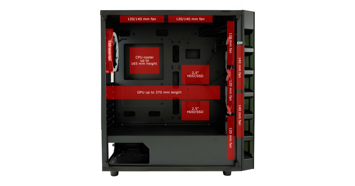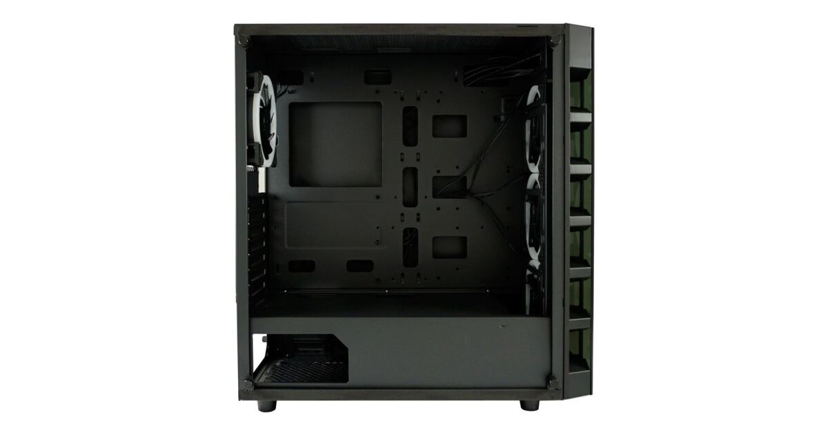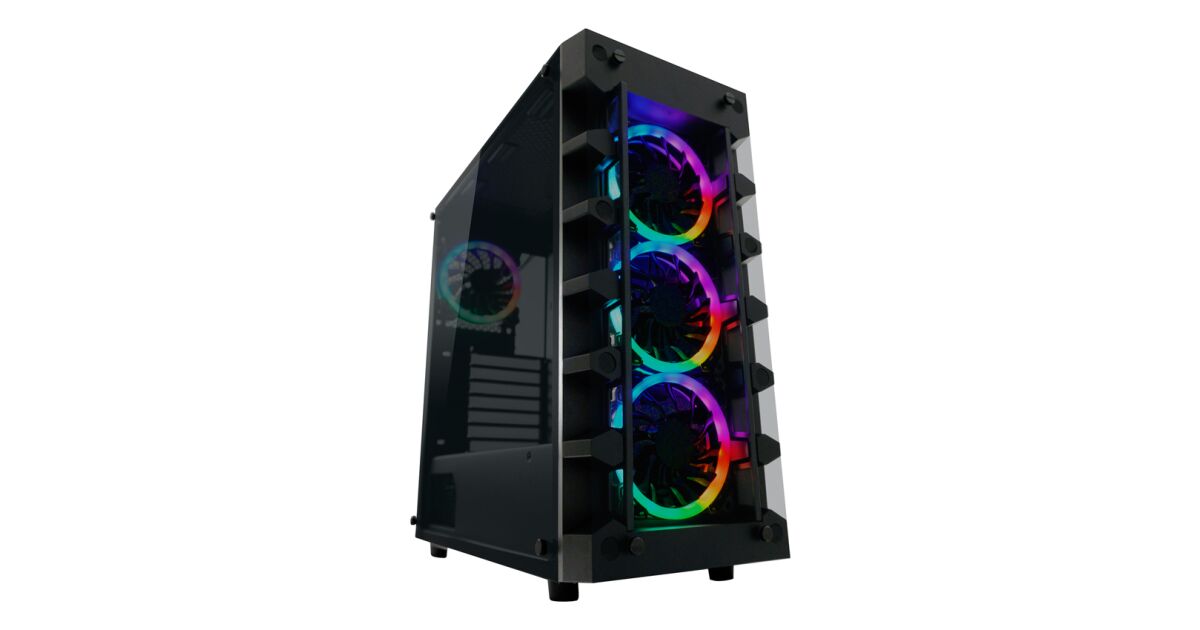 Тази модерна, елегантна кутия за компютър е идеалният избор за вашия геймърски компютър. Вградените RGB вентилатори предлагат зашеметяваща гледка, докато отличният въздушен поток осигурява оптимално охлаждане на компонентите. Удобно се разширява и разполага с всички необходими конектори.