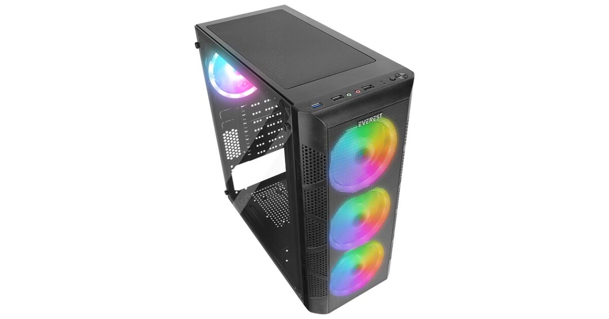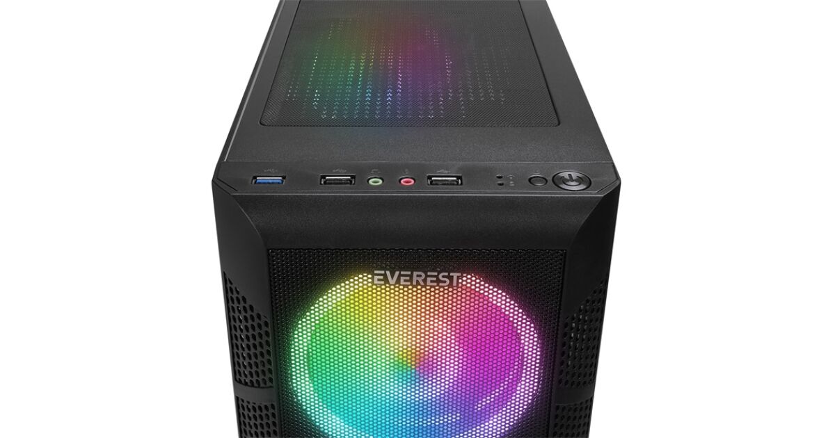 Компютърна кутия Everest Plaid V1: Стилен корпус с RGB осветление за ATX дънни платки
