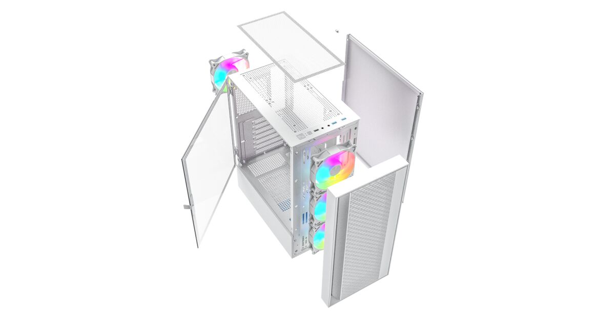 Компютърна кутия Gembird, Fornax 4000, ARGB, Mid-Tower, Без захранване, ATX, Бял (CCC-FC-4000W) покупка: