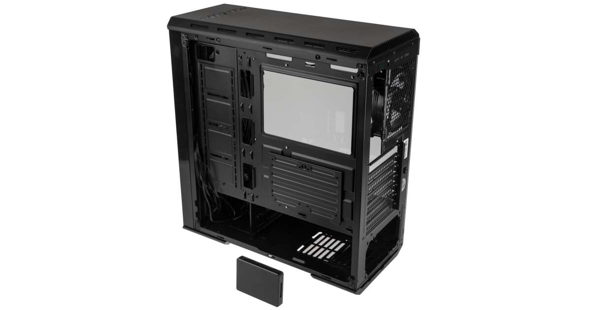 - Просторно вътрешно пространство: 3 x 3.5″ HDD или 3 x 2.5″ SSD, както и 2 x 2.5″ SSD място на тавата за дънната платка. Има достатъчно място за твоите компоненти! 💾