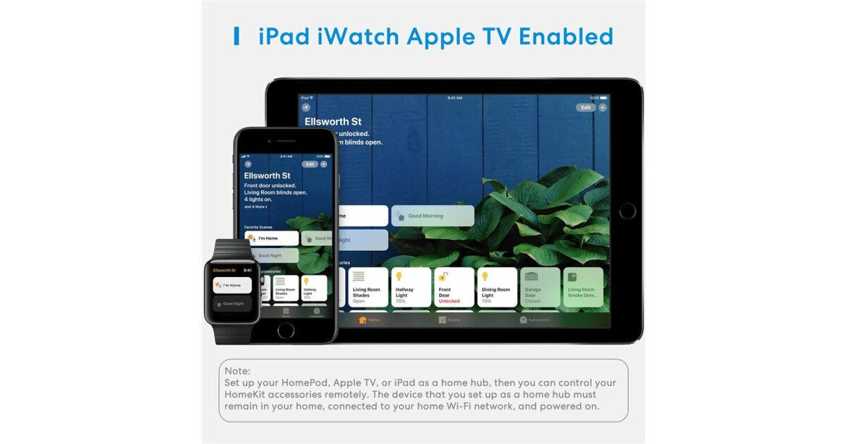 - Съвместим с Apple HomeKit: Интегрирайте го в съществуващата си система Apple HomeKit.