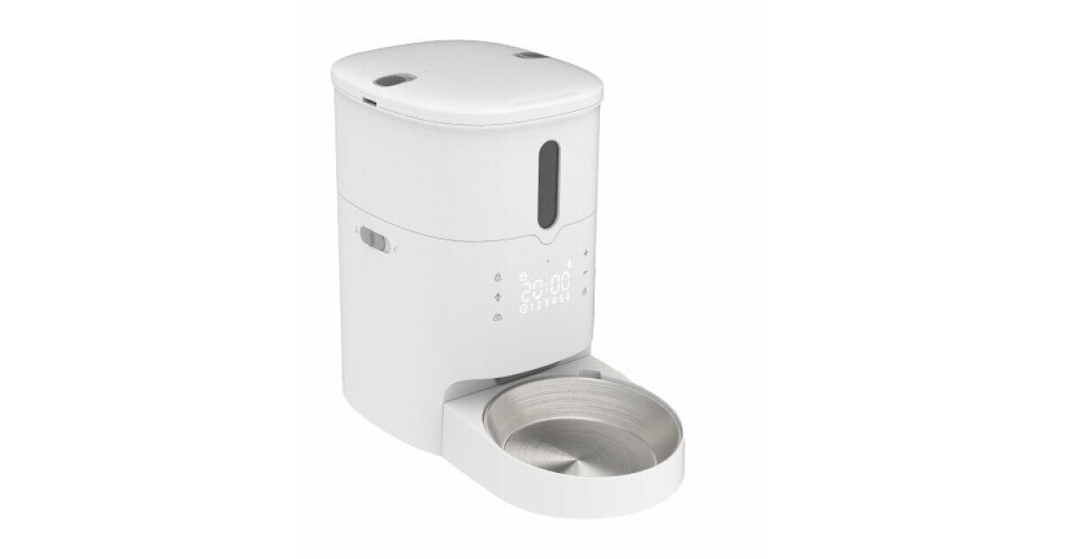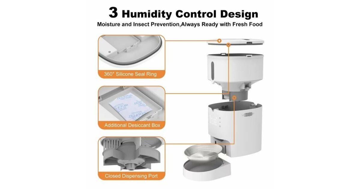 Незапушващ се 3-литров резервоар за храна: Хранете вашия домашен любимец последователно и равномерно по график. Хранилката за домашни любимци запазва храната свежа и вкусна при всяко хранене. Идеален за бизнес пътувания, ваканции и ранни сутрини. Няма повече да се притеснявате да ставате призори, за да нахраните домашните си любимци! Индивидуален график за здравословно хранене за домашни любимци: Вашият домашен любимец получава необходимото количество храна навреме. Тази хранилка за котки регулира количеството храна при всяко хранене, като позволява до 50 порции на ден (6 хранения на ден). Лесни за използване гласови повиквания: Запишете персонализирано 10-секундно съобщение, за да поддържате връзка с косматия си приятел. Автоматичната хранилка за домашни любимци гарантира, че той остава сит и щастлив, ако се храни по график. Сваляща се купа от неръждаема стомана: Автоматичната хранилка е оборудвана с купа от неръждаема стомана за храни, която е безопасна и без мирис. Това предпазва вашия домашен любимец от алергични реакции към пластмасови предмети. Пластмасовите купи могат да причинят здравословни проблеми, като например потъмняване на брадичката. Неръждаемата стомана е непорест материал, устойчив на петна и лесно почистващ се от остатъци от храна, предотвратявайки потъмняването на брадичката на вашия домашен любимец и запазвайки здравето му. Безопасно съхранение с плъзгащ се капак и двоен източник на захранване: Плъзгащият се заключващ се капак помага да запазите храната хрупкава, ароматна и защитена от замърсители. Използвайте включения AC адаптер или три D батерии (не са включени), за да захранвате хранилката, така че вашият домашен любимец да може постоянно да получава храна!