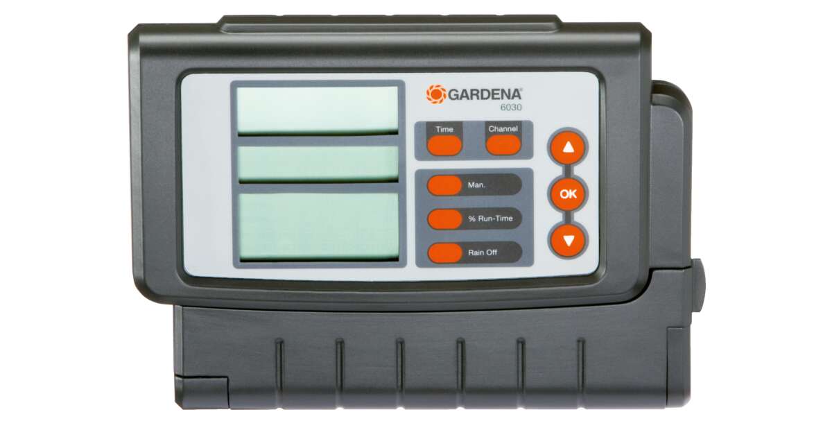Тази система за напояване GARDENA Classic 6030 е идеалното решение за напояване на по-големи градини. Можете лесно да контролирате поливането и е подходяща за едновременен контрол на няколко напоителни системи.