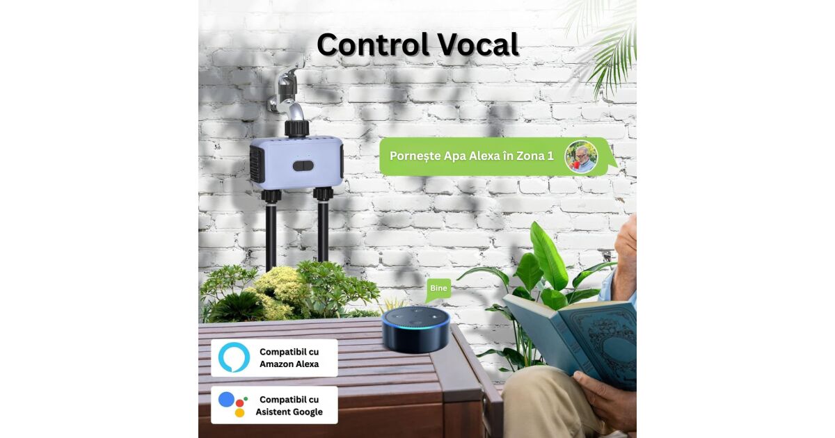 Умен WiFi таймер за поливане на градина - 2 зони, 40 програми, с гласов контрол 🌿💧