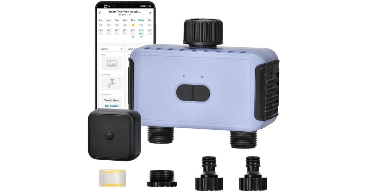 Автоматизирайте поливането на вашата градина с този интелигентен WiFi таймер за поливане! С две независими зони за поливане, 40 персонализирани програми и гласов контрол (съвместим с Amazon Alexa и Google Assistant), можете лесно да персонализирате графика си за поливане. Можете да проверявате и променяте настройките по всяко време и навсякъде чрез приложението Smart Life (iOS и Android).