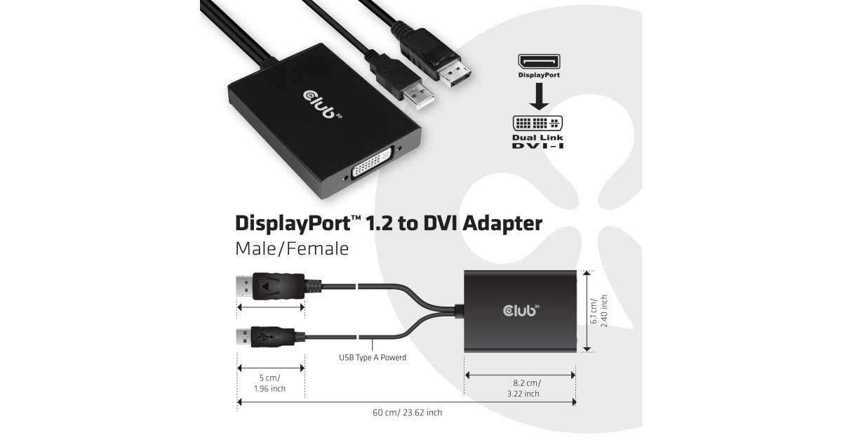 CLUB3D DisplayPort™ 1.2 - Dual Link DVI-D адаптер: Насладете се на кристално чиста 4K картина! 🖥️