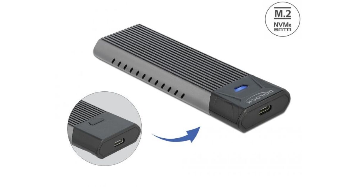 Външен корпус за M.2 NVMe/SATA SSD на Delock: Монтаж без инструменти, скорост 10 Gbps 🚀