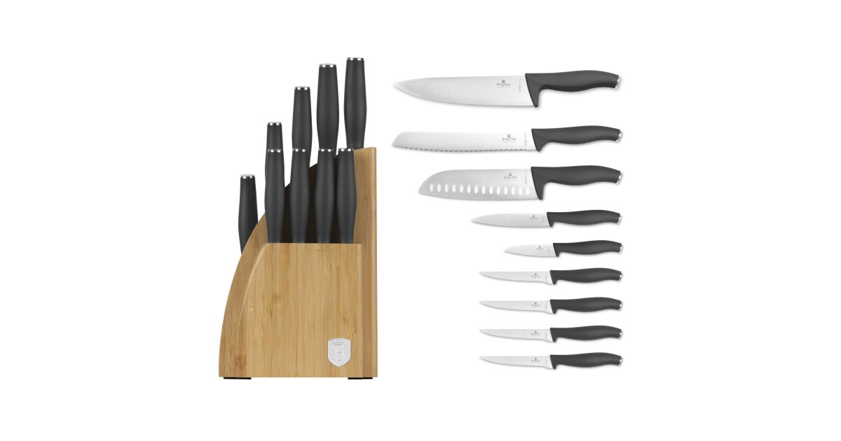 Комплект ножове Berlinger Haus Antracit 10 части с бамбуков блок: Елегантен и здрав помощник в кухнята 🔪