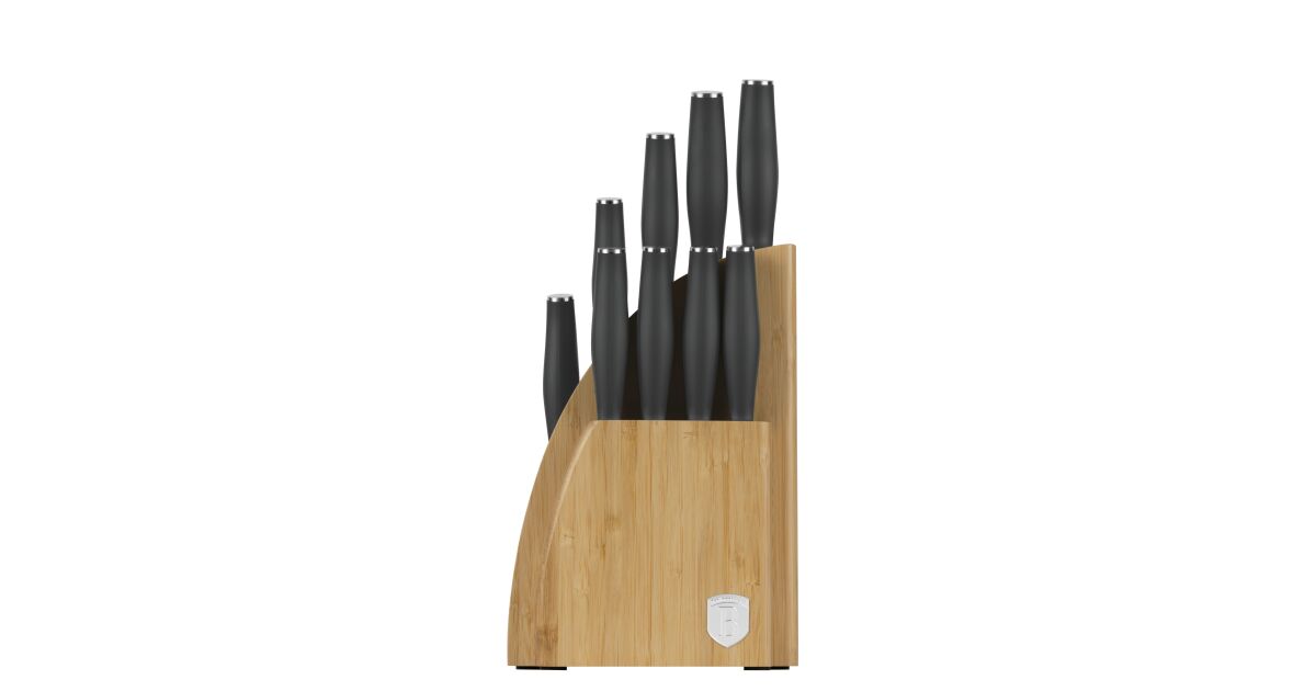 Този 10-частен комплект ножове Berlinger Haus антрацит с бамбуков блок е всичко, от което се нуждаете в кухнята. Ножовете са изработени от висококачествена неръждаема стомана, остри са, издръжливи и лесни за почистване. Ергономичните дръжки осигуряват комфортно ползване, а елегантният антрацитен цвят ще придаде модерен вид на вашата кухня.