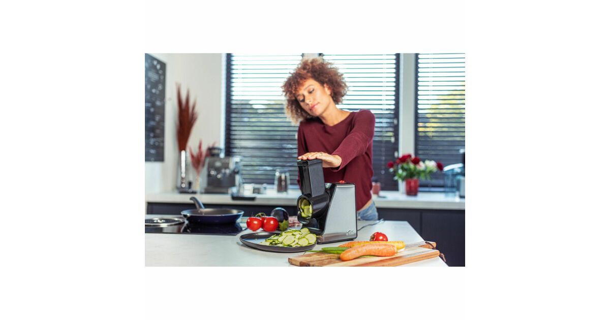 Тази електрическа резачка Solis Slice & More е идеалният избор за модерната кухня, където е необходимо бързо и ефективно приготвяне на храна. С 5 сменяеми остриета можете лесно да настъргвате, нарязвате и накълцвате зеленчуци, сирена, шоколад и много други! ✨